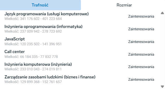 brak możliwości zawężania po statusie zatrudnienia, dochodach itp.